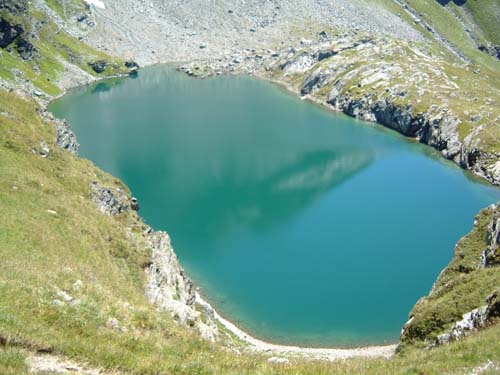 Là, une passerelle vous permet de franchir un petit ruisseau. Emprunter le sentier qui serpente dans les pentes herbeuses face au refuge.