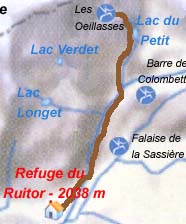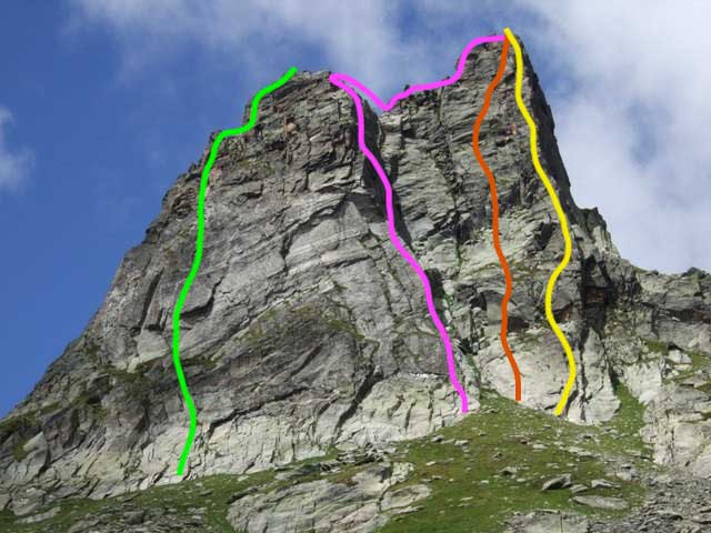 Niveau Grimpeur expérimenté. Cotation 5 a ou 5 c obligatoire selon la voie empruntée. Matériel conseillé Coinceurs et sangles. Itinéraire pour accéder au pied des voies Depuis le refuge, longer le torrent rive droite jusqu'au fond du plateau.