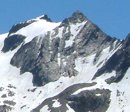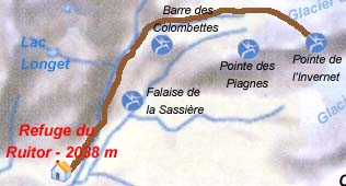 A mi-parcours, ne pas traverser le torrent, franchir les éboulis puis le torrent qui arrive du glacier.
