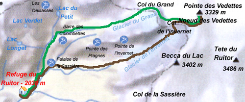 Niveau Alpinisme confirmé. Itinéraires Par le glacier du Grand Assaly
